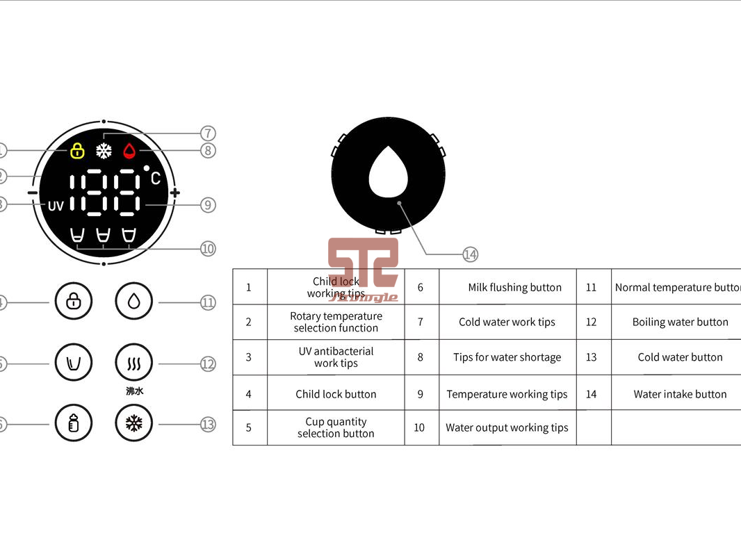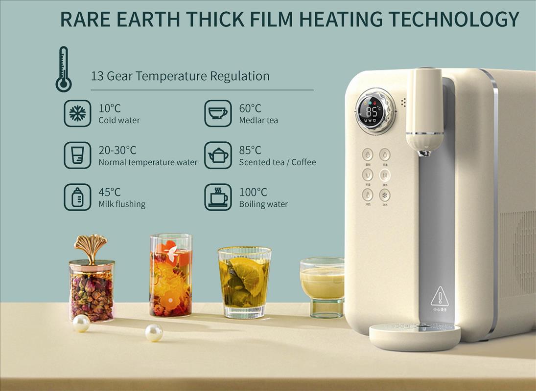 * Built-in cooling system, the outlet temperature can be as low as 12°C                                                          * 13-level [normal temperature] (inlet water temperature value)45℃-50℃-55℃- 60℃-65℃-70℃-75℃-80℃-85℃-90℃-100℃-COLD(around 10℃)